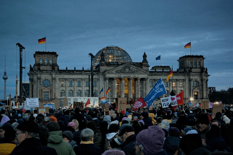มีการแบ่งขั้วอย่างรุนแรงในสังคมและมีการแข่งอิทธิพลระหว่างกลุ่มฟาสซิสต์และกลุ่มต่อต้านฟาสซิสต์ ตัวแทนของพรรค AfD ได้พบกับกลุ่มนาซีที่แสดงตัวอย่างเปิดเผยและ Martin Sellner จากขบวนการอัตลักษณ์นิยม ได้หารือกันในประเด็นการขับไล่คนจำนวนมหาศาล เมื่อเรื่องดังกล่าวถูกเปิดเผย ผู้คนหลายแสนคนจึงออกมาเดินขบวนบนท้องถนน แต่ในเวลาเดียวกัน พรรค AfD ก็สามารถระดมคนได้มากขึ้น