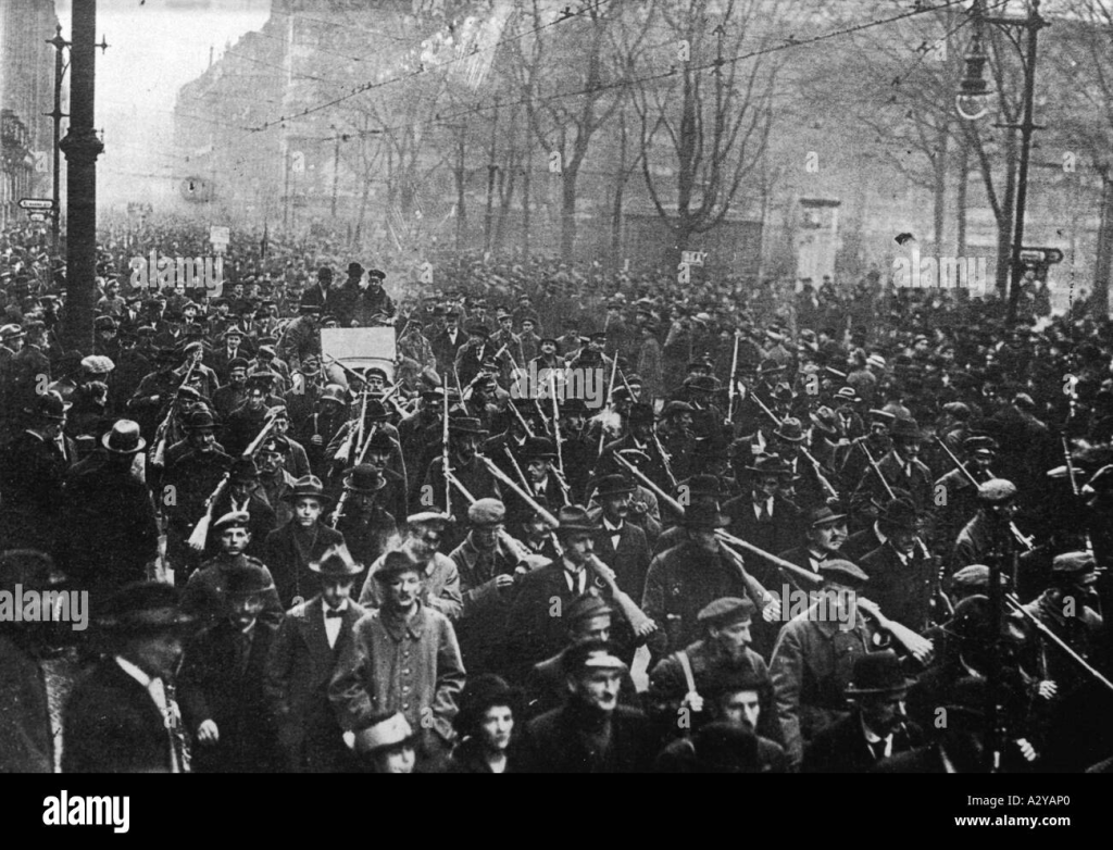 ก่อนหน้านั้นการปฏิวัติเดือนตุลาคม ปี 1917 ในรัสเซียได้สร้างความหวังให้กับชนชั้นกรรมาชีพ และหนึ่งปีหลังจากนั้นกระแสปฏิวัติในยุโรปก็ได้เกิดขึ้น ในปี 1918 ซึ่งเป็นช่วงท้ายของสงครามโลกครั้งที่ 1 ประชาชนเยอรมันเดือดร้อนจากการขาดแคลนอาหาร และเชื้อเพลิงเนื่องจากกองทัพเรืออังกฤษปิดทะเลเหนือ ทำให้สินค้าเข้าไม่ถึงเยอรมัน นอกจากนี้กองทัพเยอรมันก็เริ่มพ่ายแพ้ในสมรภูมิแนวรบด้านตะวันตกอีกด้วย ความไม่พอใจต่อสภาพเศรษฐกิจ และสงครามก็ระเบิดออกมาเป็นการปฏิวัติในที่สุด